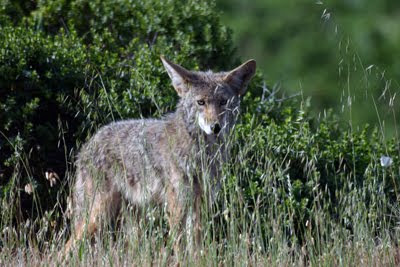 A Coyote Eyes Me Cautiously from Behind the Grass in the Golden Gate National Recreation Area, Marin.